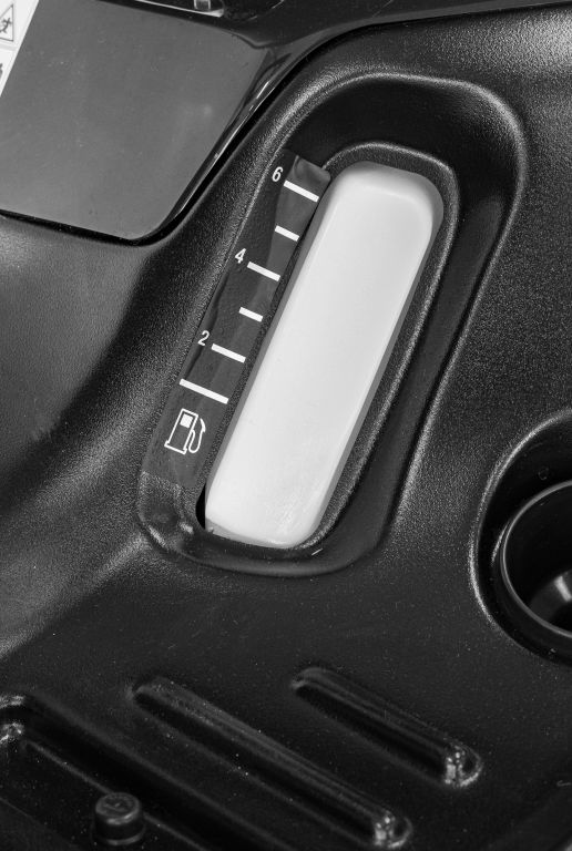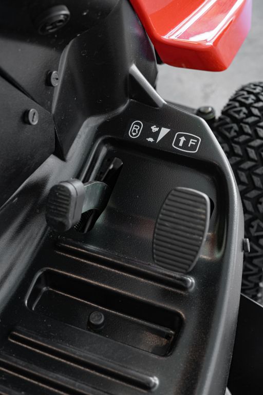 The lawn tractor is driven by a user-friendly hydrostatic transmission (stepless drive) with a pedal for driving forwards and a pedal for reversing.