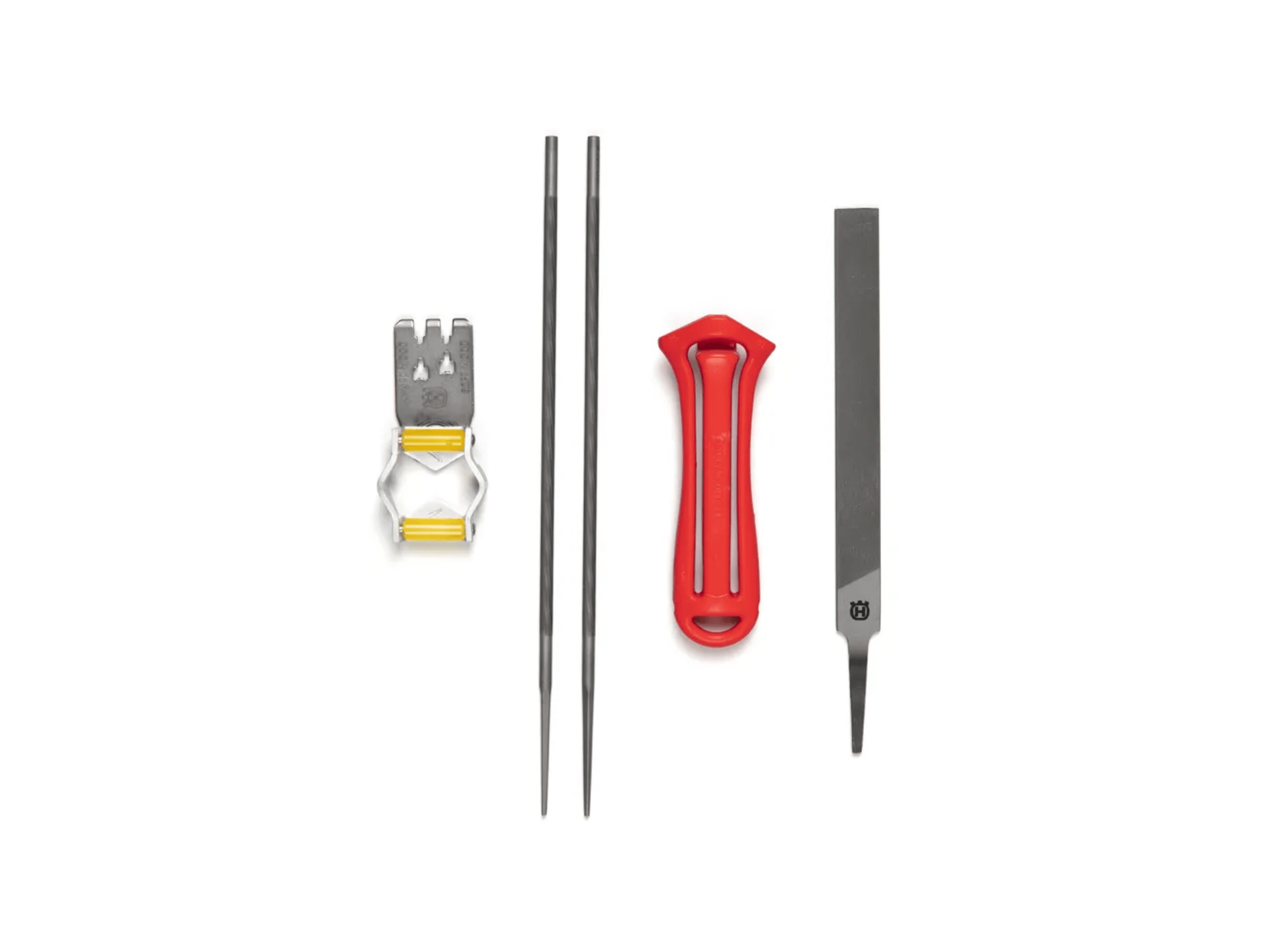 Bestehend aus Feilengriffen, Kombilehre, 2 Rundfeilen und 1 Flachfeile.