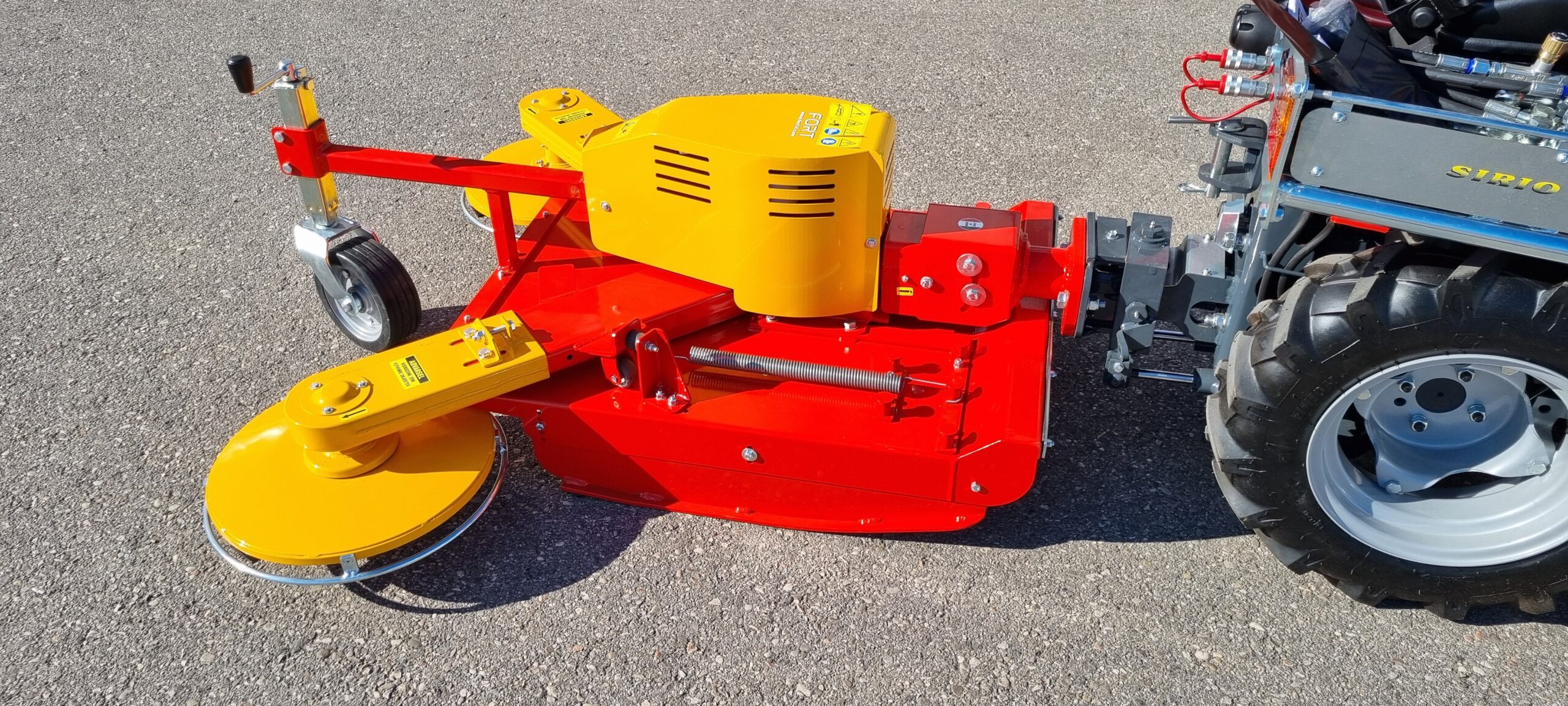 Dieser Mulcher setzt sich aus einen 70cm Mähkörper mit Fliehkraftmessern und 2 Mähköpfe mit je 40cm Schneidekreis zusammen.